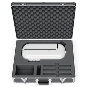 De levering omvat ook een verstelbaar statief met geïntegreerde waterpas, een USB-C-aansluiting en een lensdop.