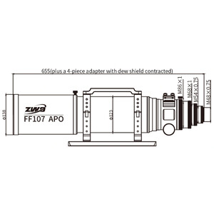 De ZWO FF107 APO is een quadruplet-apochromaat die speciaal is ontwikkeld voor de hoge eisen van astrofotografie, maar ook uitstekend geschikt is voor visuele observatie. De optische constructie bestaat uit vier lenselementen, waaronder twee ED-glazen met een bijzonder lage dispersie. Deze combinatie zorgt voor een uitstekende kleurcorrectie, haarscherpe sterren tot aan de rand van het 44 millimeter grote beeldcirkel en een volledig vlak beeldveld – zonder extra flattener.