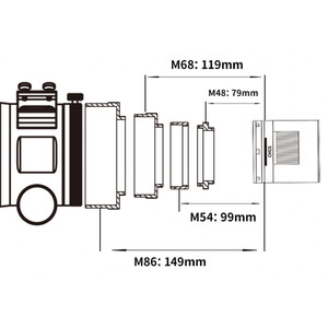 Zelfnivellerend ontwerp U hebt geen extra flattener (beeldveldnivelleerder) nodig. Het is ook niet nodig om een bepaalde backfocus aan te houden. U kunt eenvoudig elk gewenst accessoire aansluiten, zolang het maar in het brandpunt komt. Voor visuele observatie is een brandpuntsafstand van 120 mm beschikbaar voor prismas of andere accessoires.