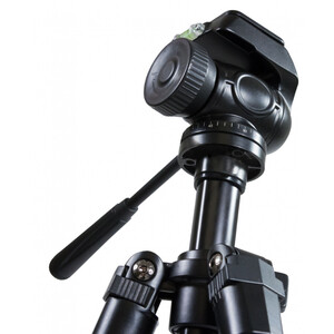 Dit statief is van een tweerichtingswaterpas voorzien. Er is één handgreep waarmee u de kop gemakkelijk kunt kantelen en met een groot uitgevoerde knop stelt u de spanning in en vergrendelt u de kantelkop. Met de snelkoppelingsplaat met standaard 1/4-20 fotoschroefdraad kunt u eenvoudig een spotting scope, verrekijker, camera of kleine telescoop op het statief bevestigen. De plaat wordt in de snelkoppelingsplaat geklikt.
