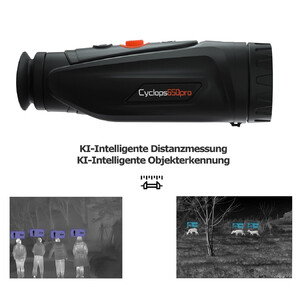 De Cyclops Pro van ThermTec is een warmtebeeldcamera van de nieuwe generatie met unieke voordelen. Het instrument is uitgerust met de nieuwe, energiezuinige 12 µm VOX-sensor. Hiermee kan wild tot op een afstand van 2500 m worden gedetecteerd. De zeer gevoelige VOX-warmtebeelddetector zorgt voor goede beelden op grote afstand, zelfs bij slechte weersomstandigheden. De geïntegreerde lens kan handmatig worden scherpgesteld en zorgt voor scherpe en contrastrijke beelden.