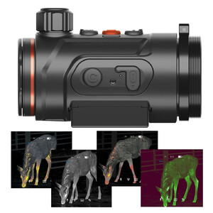 De Hunt 335 Pro van ThermTec zet nieuwe maatstaven in de warmtebeeldtechnologie. Dit veelzijdige opzetstuk, de Hunt 335 Pro, kan snel en eenvoudig op uw dagelijkse optiek worden gemonteerd (adapters optioneel verkrijgbaar) en verandert uw richtkijker in een krachtige nachtkijker. De Hunt 335 Pro is perfect voor veeleisende jachttochten en overtuigt door een uitstekende prijs-kwaliteitverhouding, een hoge resolutie van 384x288 Pixel, een handmatig scherp te stellen 35 mm lens met innovatieve vingerverschuiving, een gevoeligheid van ≤ 15 mK, een indrukwekkend detectiebereik tot 1.800 meter, een groot gezichtsveld van ca. 13,1 meter op 100 meter en een verwisselbaar accusysteem met een gebruiksduur tot 14 uur dankzij de meegeleverde tweede accu, die gemakkelijk via USB-C kan worden opgeladen.