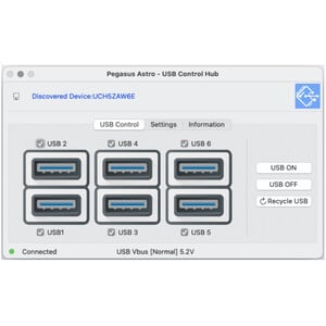 Device fully supports ASCOM switch. This means that you can switch ON/OFF each USB port via ASCOM supported software.