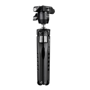 It couldn't be more compact with the same stability: this set consisting of the MT-03 tabletop tripod and the MBH-19 ballhead weighs only 251 g! Its complete pack size – tripod with screwed-on ballhead – is a short 192 mm. There's no question about where to put it when you're on the go. It fits even in smaller camera bags. This spider leg mini tripod offers virtually unlimited freedom, flexibility and creativity. The first technical prerequisite for this is Leofoto's standard manufacturing method. As with all Leofoto products made of aluminium, only heavy-duty aircraft aluminium is used, which is CNC-milled with extreme precision. A load capacity of 15 kg (with the camera mounted directly on the ¼" screw) is the result of high-quality materials and precise manufacturing. The weight of 162 g is distributed over a closed length of 143 mm. Without the ballhead, the working height is a maximum of 180 mm and a minimum of 30 mm.