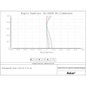Unlike the other models in the series, the 65PHQ features a five-element lens design (quintuplet). Three lenses, including two ED glass elements, form the objective lens, whilst two further lenses in the middle section of the tube act as the field flattener (corrector). This enables excellent correction of chromatic aberration and ensures minimal distortion of stars at the edge of the field of view.