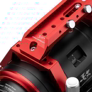 The user can enjoy the benefits of a conventional focuser with two fine focus controls without having to worry about the limitations normally found with conventional rear-mounted focusers (vignetting). The integrated position indicator window on the focuser allows instant verification of the graduated numerical display.