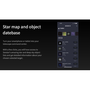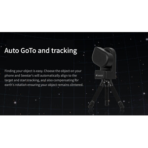 - Automatic alignment – set up the telescope and let it navigate itself. Thanks to pattern recognition and your Smartphone's GPS, the Seestar can recognise every star.
