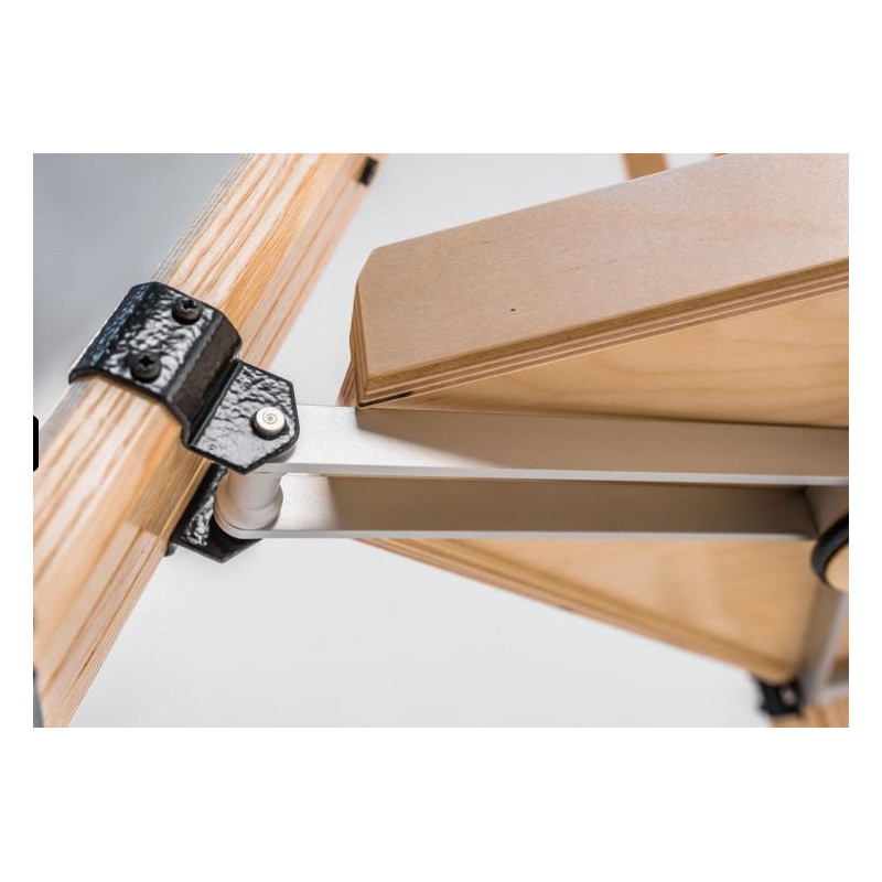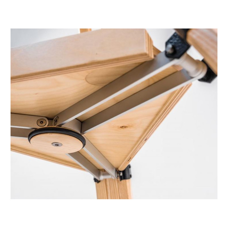 The tripod is supplied with a spreader lock/spider, onto which the shelf plate is placed and screwed.